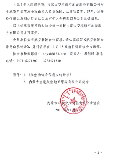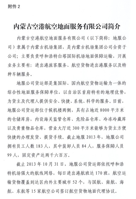 關于與內蒙古空港航空地面服務有限公司開展物流合作的通知